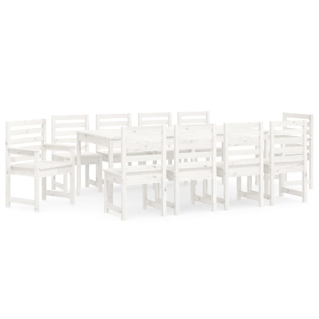 vidaXL 11 Piece Garden Dining Set White Solid Wood Pine