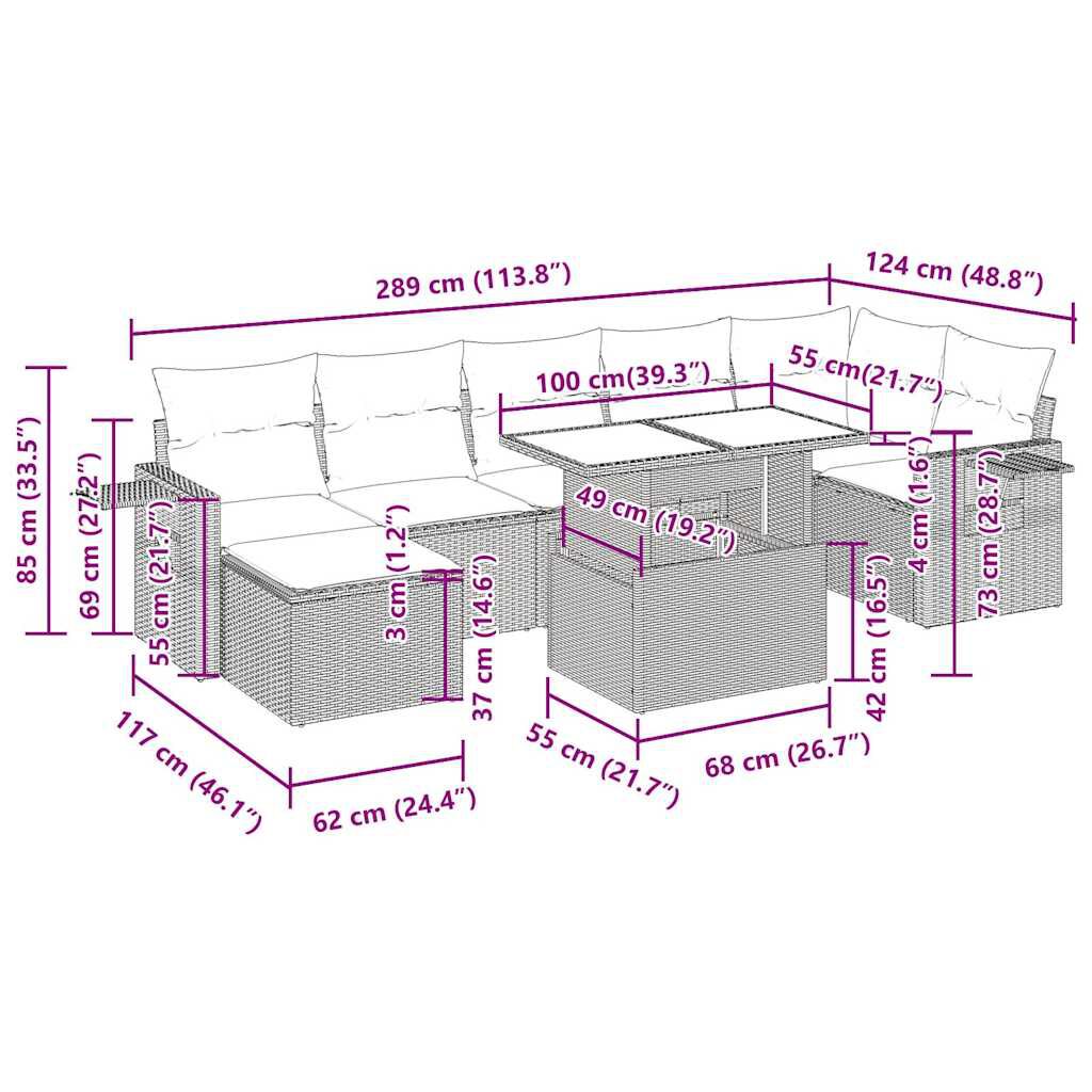 vidaXL 8 Piece Garden Sofa Set with Cushions Grey Poly Rattan Acacia