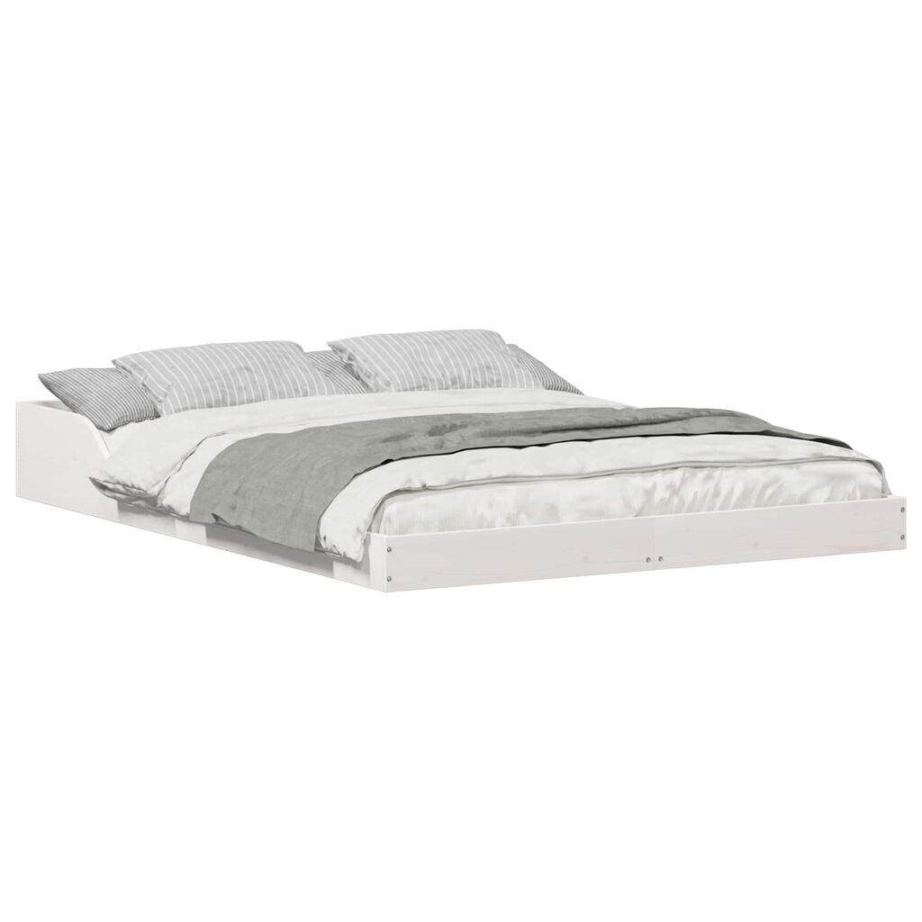 vidaXL Bed Frame White 135 x 190 cm Solid Pine Wood