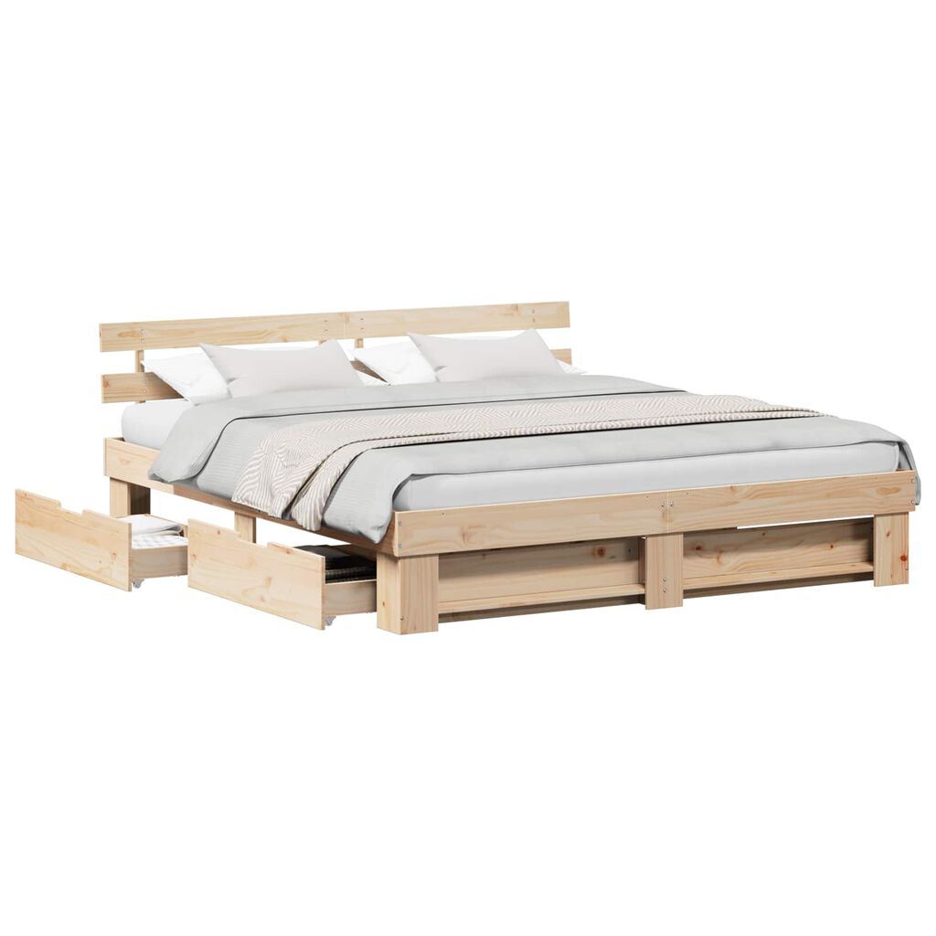 vidaXL Bed Frame with Headboard Brown 180 x 200 cm Solid Pine Wood