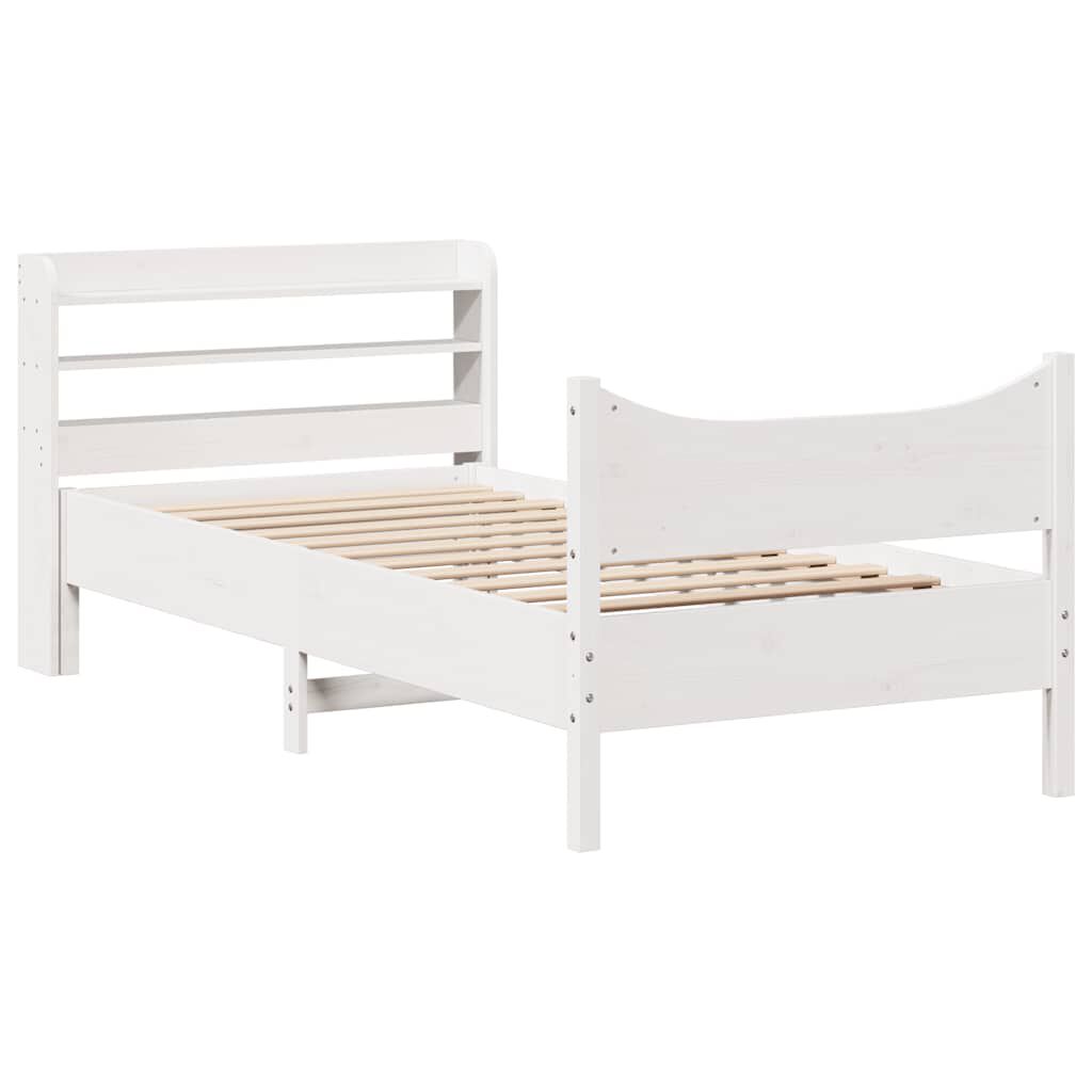 vidaXL Bed Frame with Headboard White 75x190 cm Small Single Solid Wood Pine