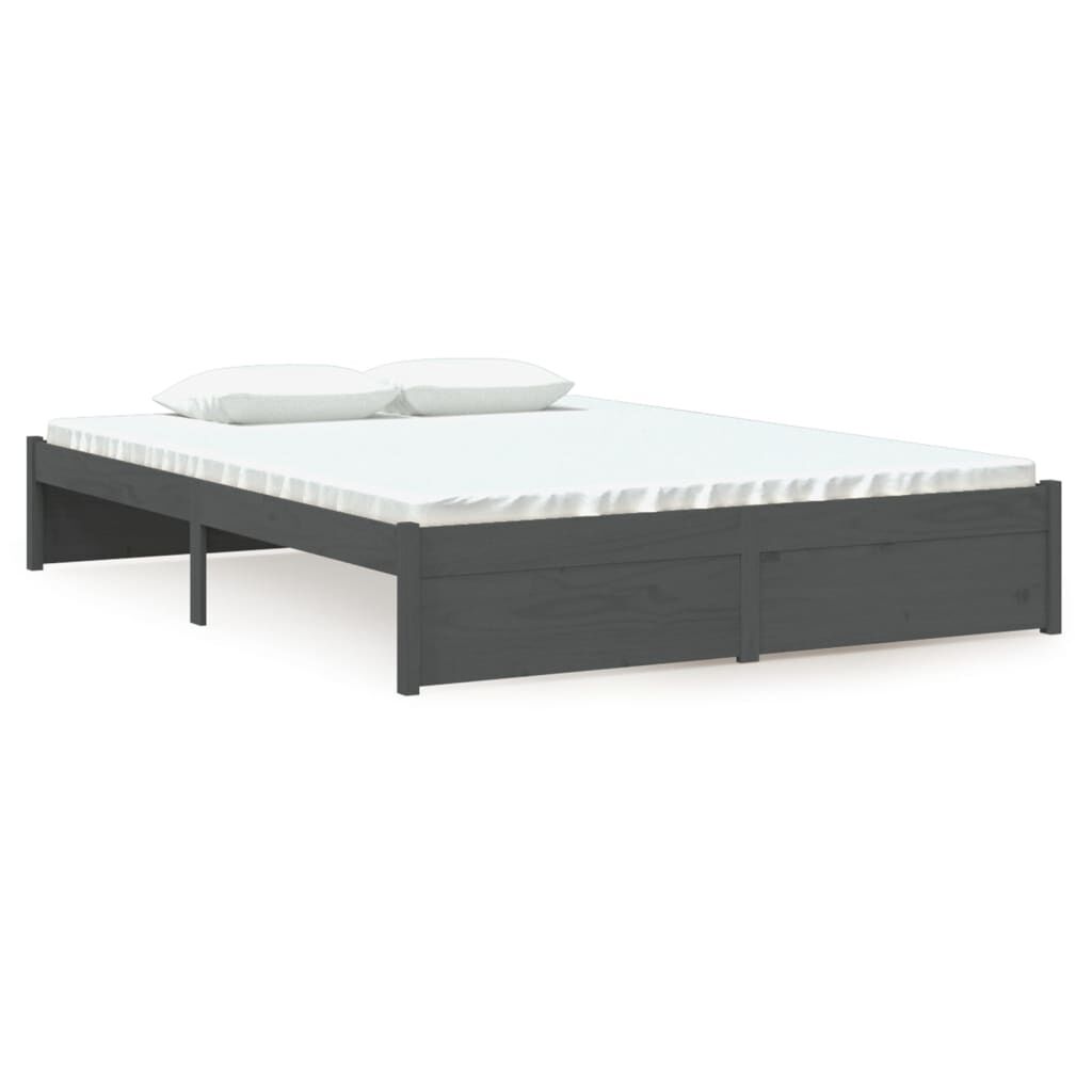 vidaXL Bed Frame without Mattress Grey Solid Wood 135x190 cm Double Double