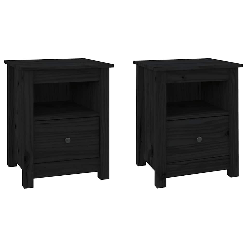 vidaXL Bedside Cabinets 2 pcs Black 40x35x49 cm Solid Wood Pine