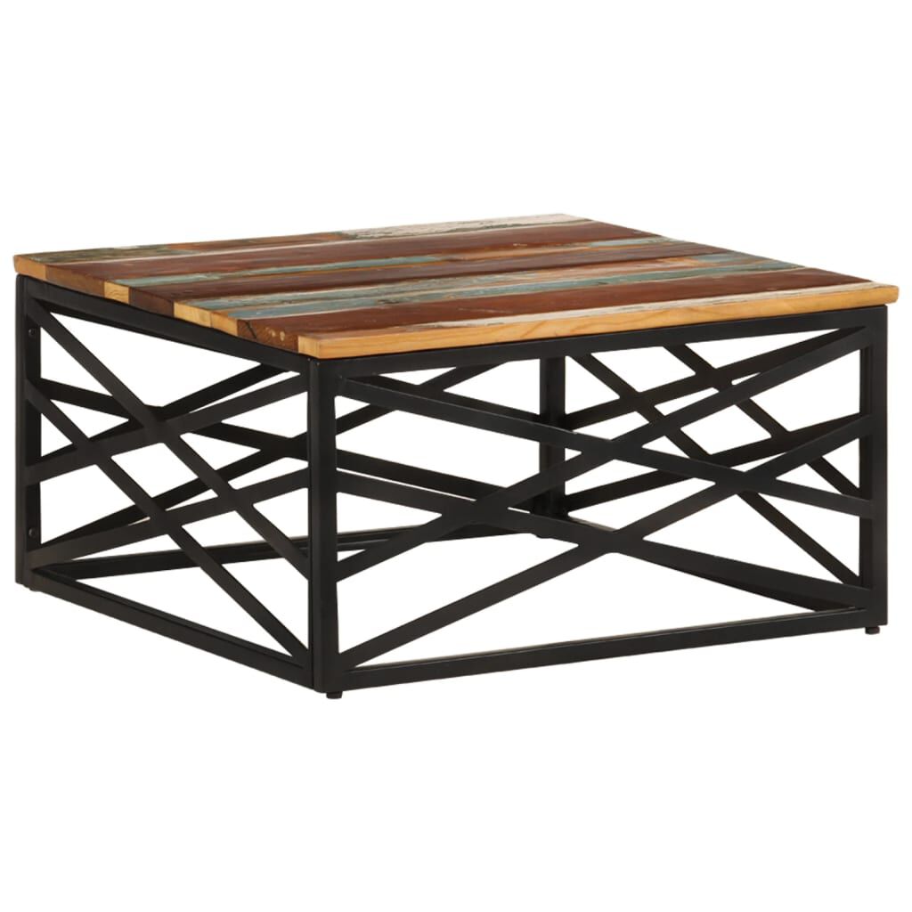 This coffee table is handmade from solid reclaimed wood, a combination of reclaimed timbers including teak, mango wood, pinewood, beech, etc. These woods are recycled from old buildings such as factories, sheds and boats. This makes it a fantastic environmentally friendly option in furniture making. As every piece is handmade, colours vary with many blues, greens, creams and sometimes oranges, reds and pinks shades revealed. This even means each one is unique! Additionally, the table legs are constructed from robust cast steel which features its hardness and toughness that contribute to the table's stability as well as to its industrial design.