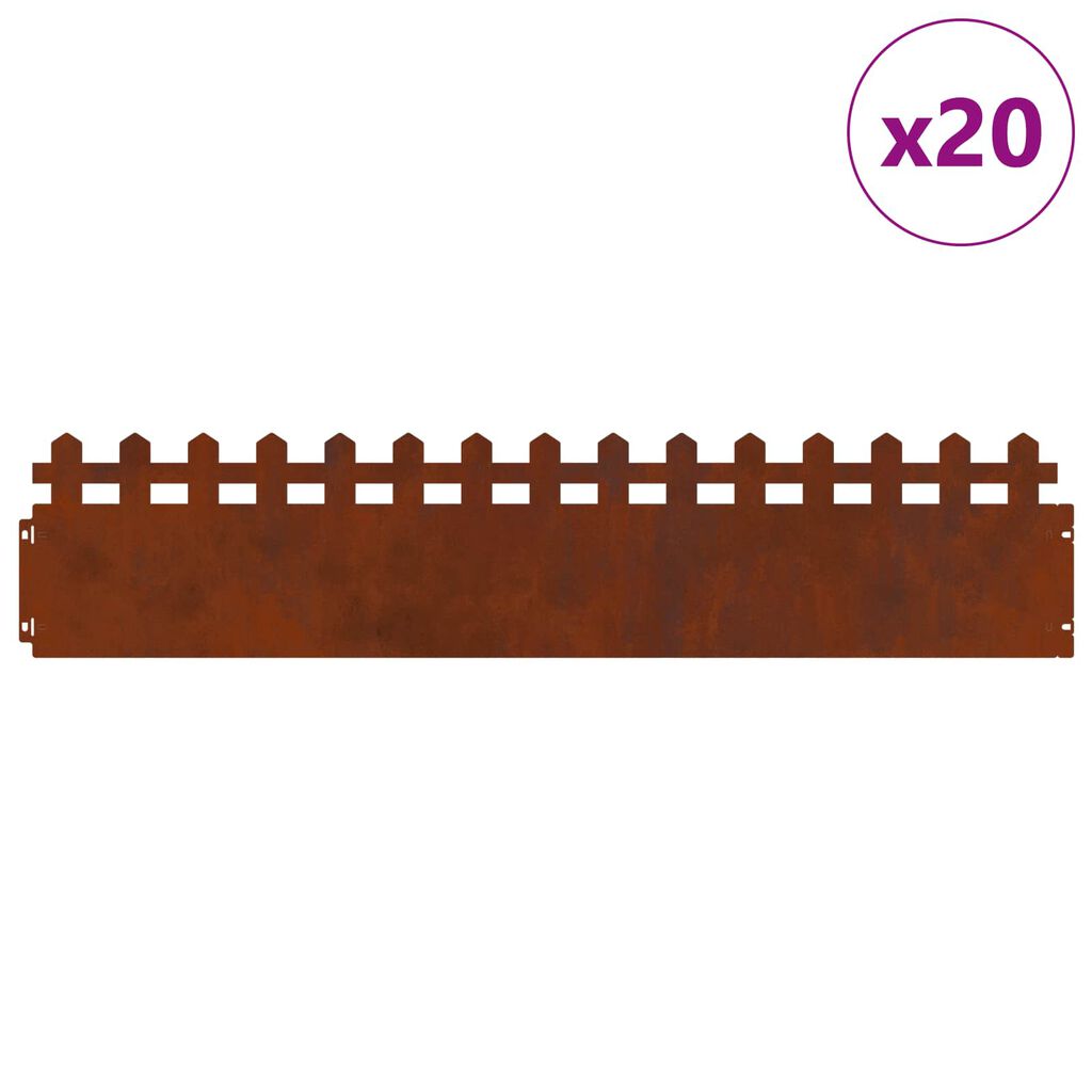 vidaXL Lawn Edgings 20 pcs Rusty 103 x 0.05 x 22 cm Weathering Steel