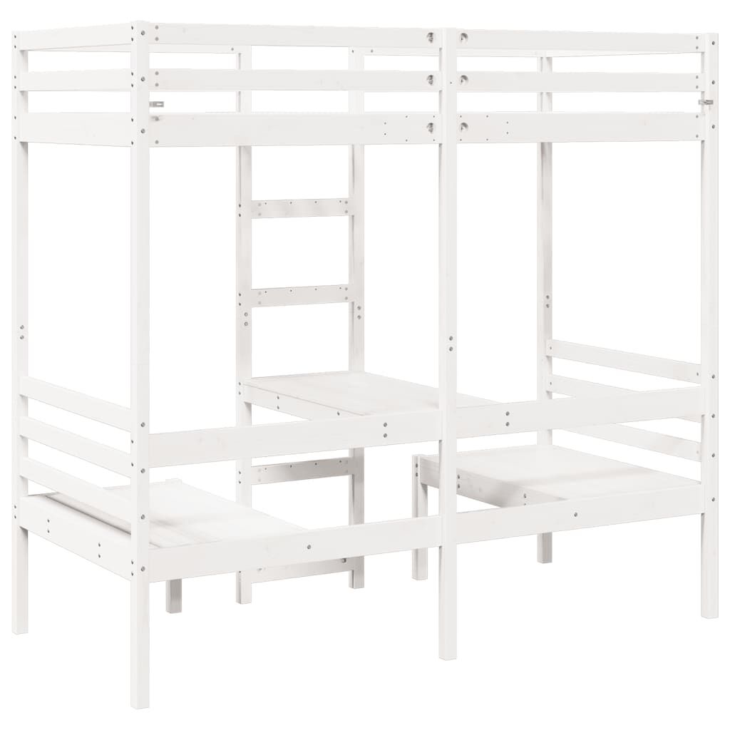 vidaXL Loft Bed Frame with Desk and Chairs White 90x200cm Solid Wood Pine