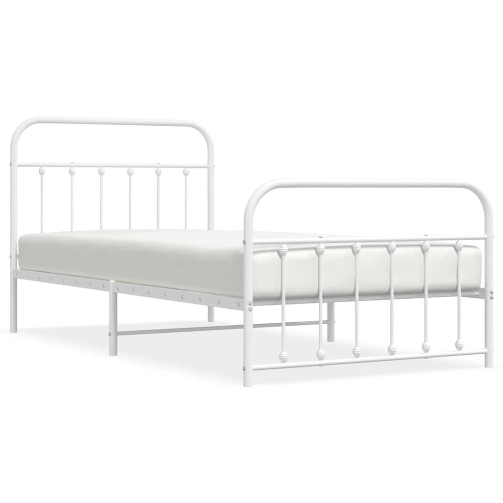 vidaXL Metal Bed Frame without Mattress with Footboard White 100x200cm