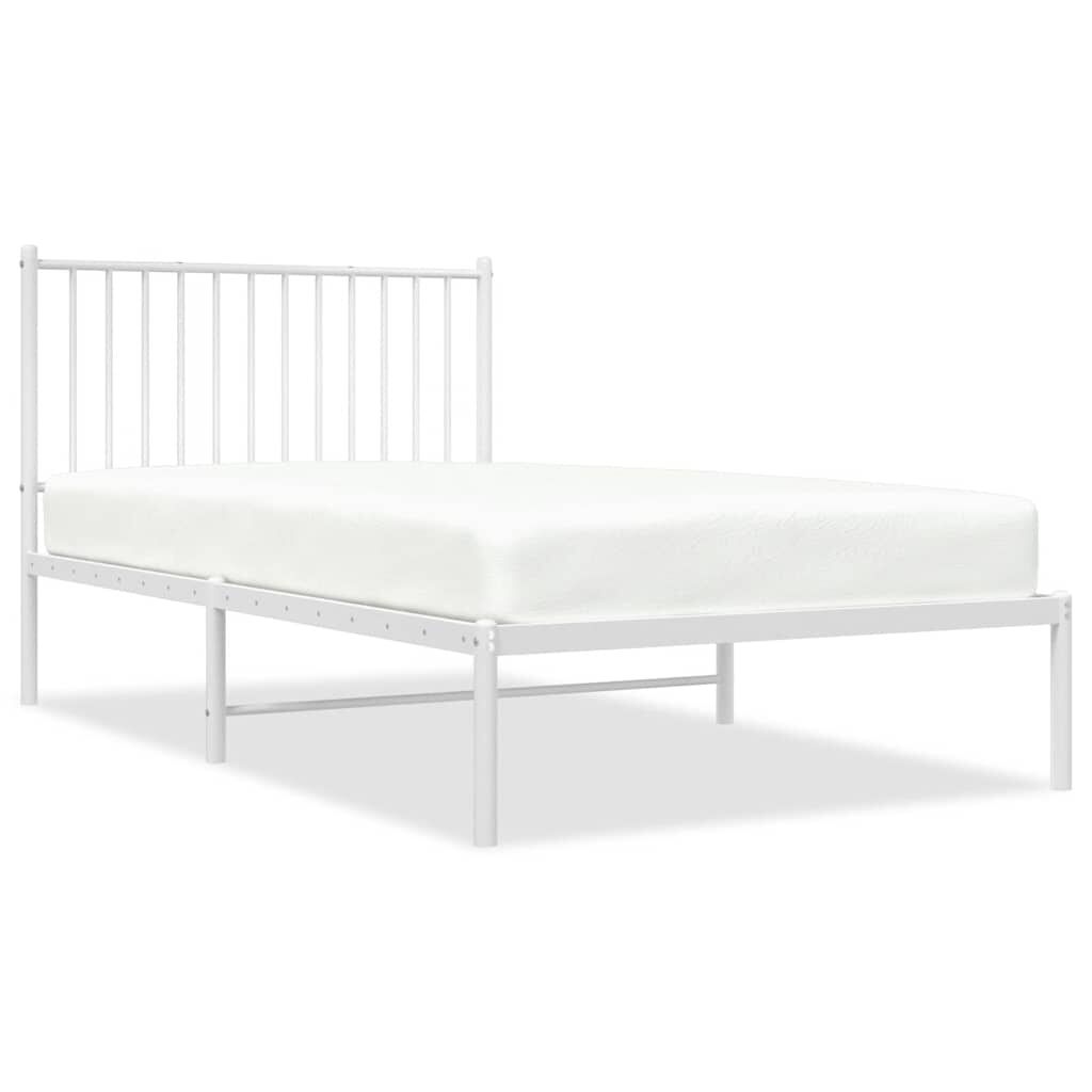 vidaXL Metal Bed Frame without Mattress with Headboard White 100x190cm