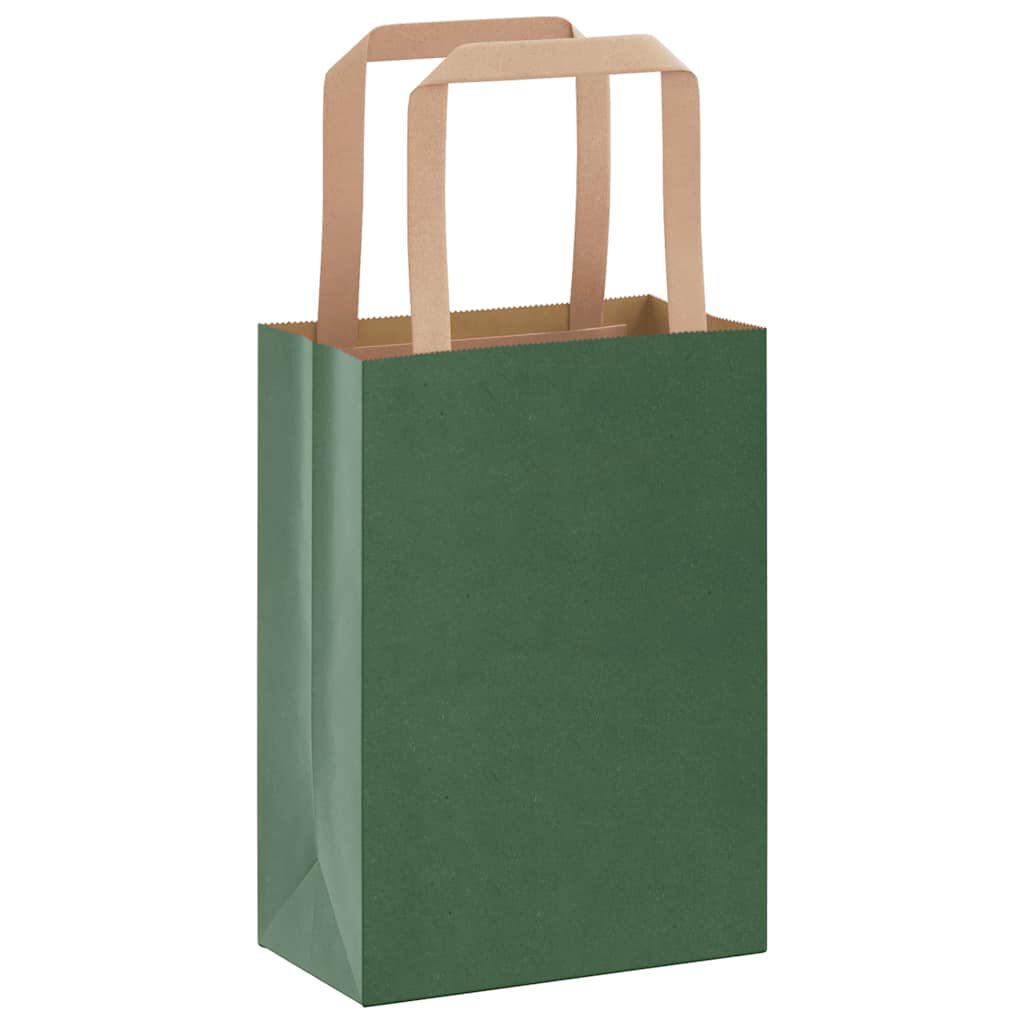 vidaXL Paper Bags 50 pcs with Handles Green 15x8x21 cm