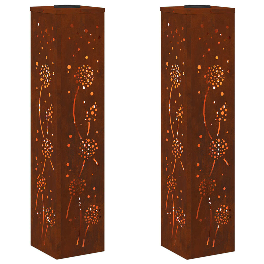 vidaXL Solar LED Pathway Light 2 pcs Rusty Weathering Steel