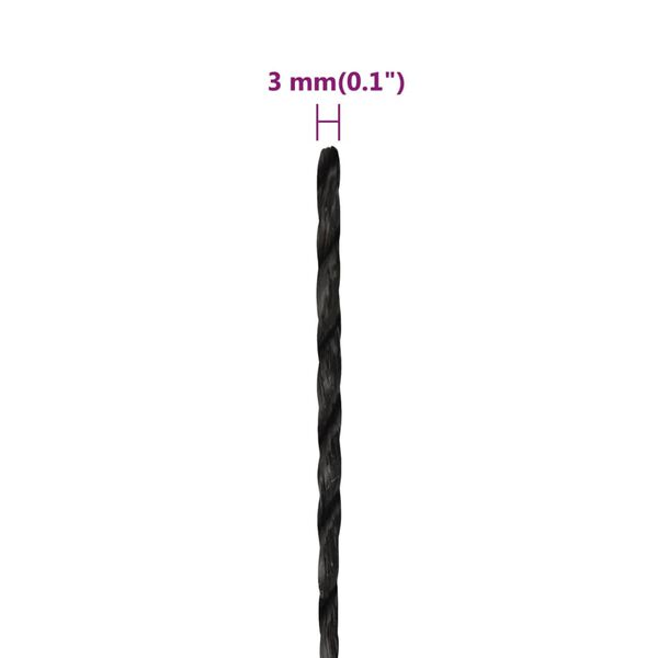 vidaXL Work Rope Black 3 mm 25 m Polypropylene