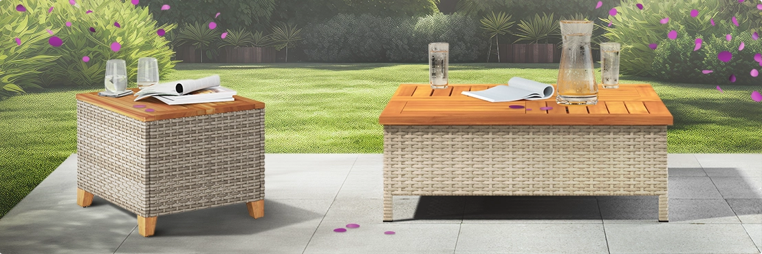 Picture this: spending your day lounging in style under the wide blue sky and enjoying a dinner party afterwards. Our natural & rattan effect garden furniture sets are your key to outdoor living, turning your backyard into a relaxation spot. Intimate gatherings or lively parties, make every moment count with furniture that's as affordable as it is stylish. Plus, the woven design makes both natural and PE rattan breathable, inviting you to enjoy comfortable slow living outdoors.