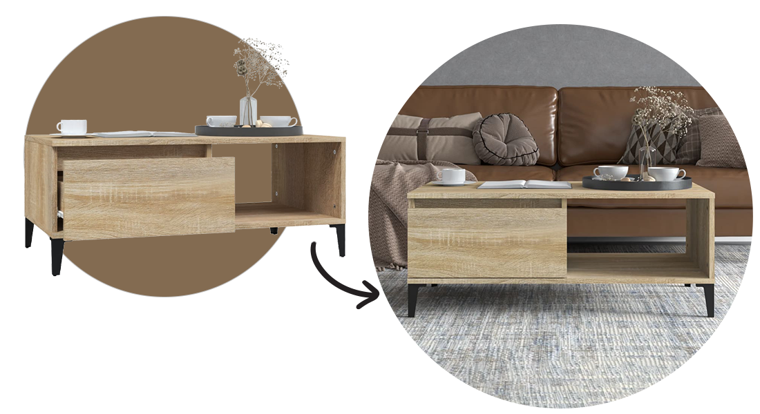 The farmhouse style invites us to slow down and appreciate small moments. Make sure to build a relaxation nook for lovely leisure time. Rustic coffee tables might be exactly what you need for a cosy living room.