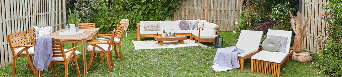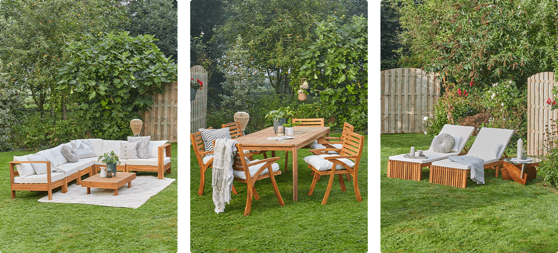The versatility of the wooden garden furniture allows you to style it in various ways. For example, our solid teak garden dining set is perfect for enjoying meals outdoors. Make it more comfortable, adding soft cushions in your favourite colour.