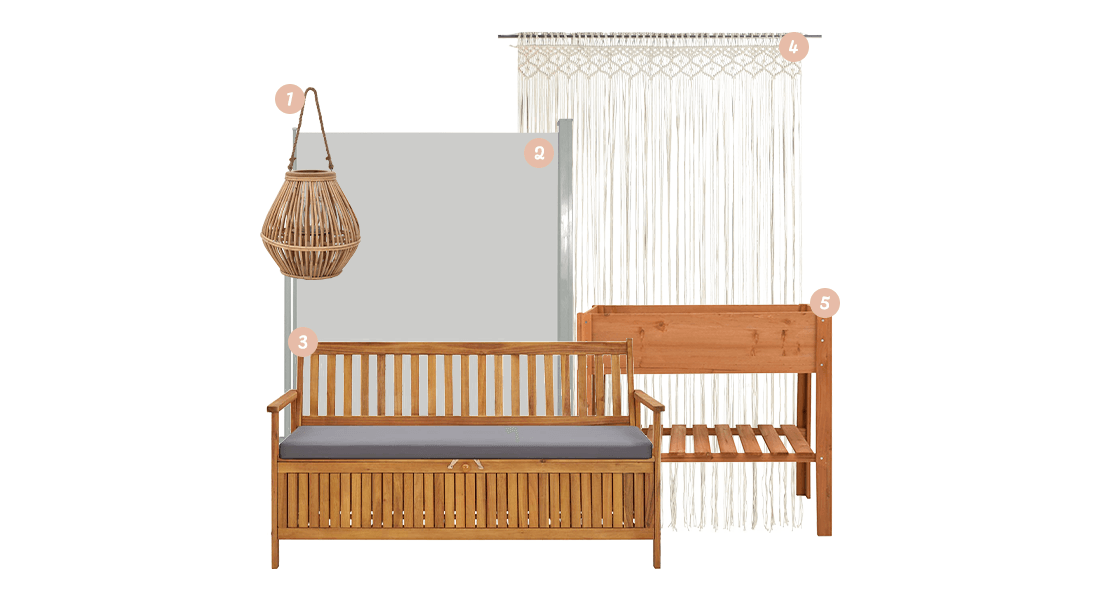 To maximise the space of your small balcony, especially when you want to create a relaxing area, you can try adding a bench or two. Accessorise the bench with comfy cushions and look for a small outdoor table that matches the laid-back design.