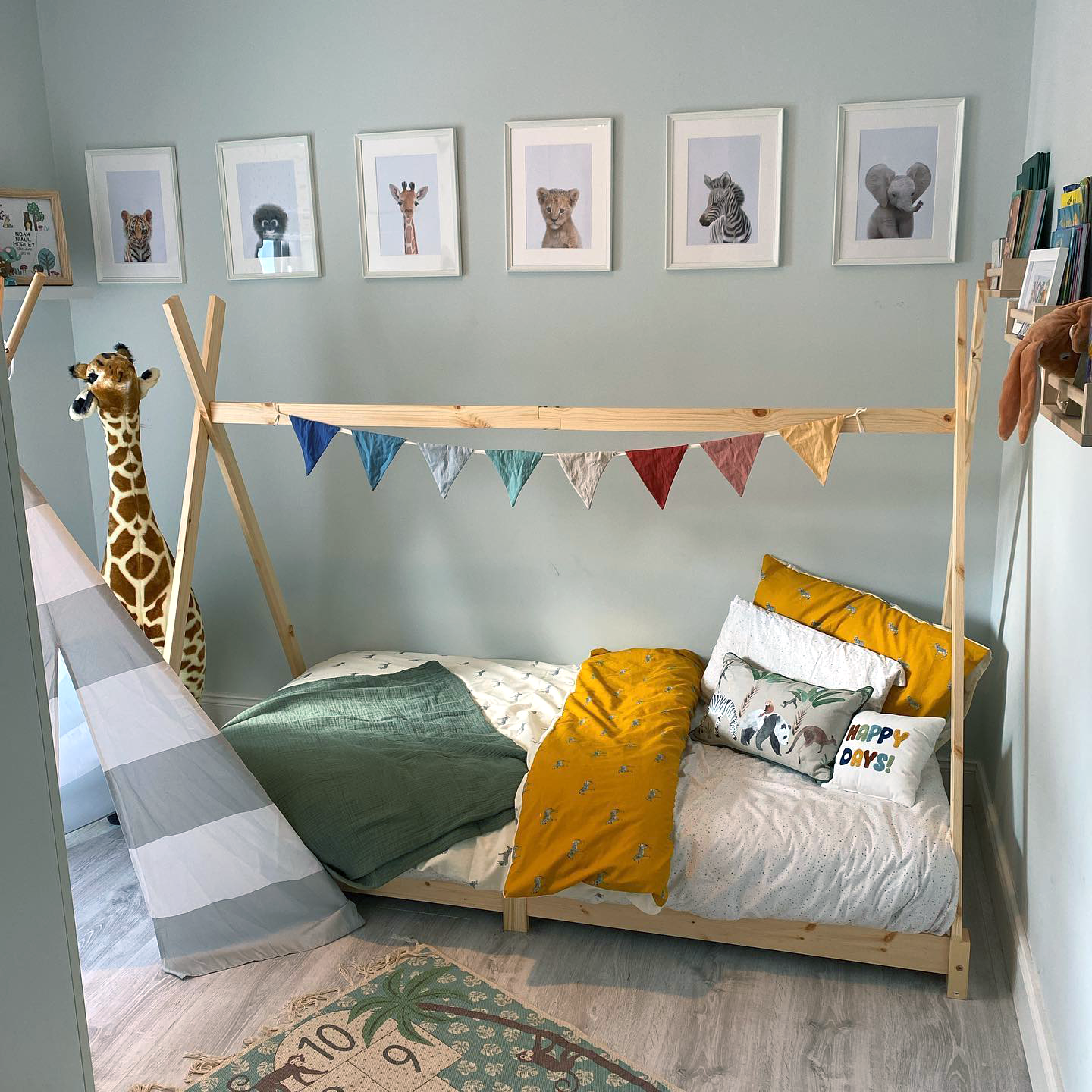 Did we mention that the possibilities for creating fantastic kids’ room wall art are endless? Take, for example, those adorable and inventive collages. Get some frames and hang everything your child likes, from personal photos to nature shots and favourite characters. You may also hang some macramé wall hangers or any other DIY decorations that you and your child can work on together to give your kid’s room wall art a warmer vibe.